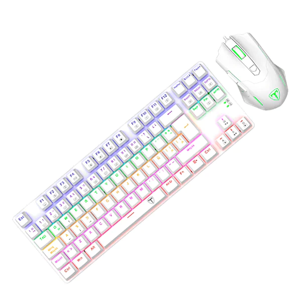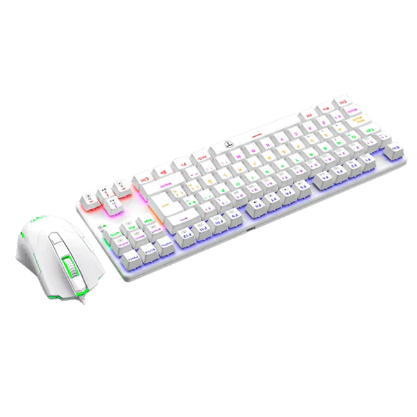El Advance Force es un conjunto diseñado para la victoria directa. Consta de un teclado mecánico compacto pero sólido y un ratón ágil y preciso, que se combinan perfectamente. El teclado, sin teclado numérico, amplía el espacio para el movimiento del ratón, ideal para juegos FPS o MOBA. Su tamaño reducido lo hace portátil, con un cable USB desmontable para facilitar su transporte y evitar daños. Los interruptores encapsulados ofrecen una durabilidad de aproximadamente 50 millones de clics, resistiendo polvo y salpicaduras. Las teclas de doble inyección mantienen su calidad sin borrarse ni despintarse, con retroiluminación rainbow y efectos dinámicos personalizables. El ratón, con 6 botones, un sensor excelente y cambio rápido de DPI, es un avance seguro, equipado con switches de alta calidad y un cable mallado de 1,8 m para una libertad de movimiento óptima. Y, por supuesto, la retroiluminación RGB indispensable para los amantes del gaming.