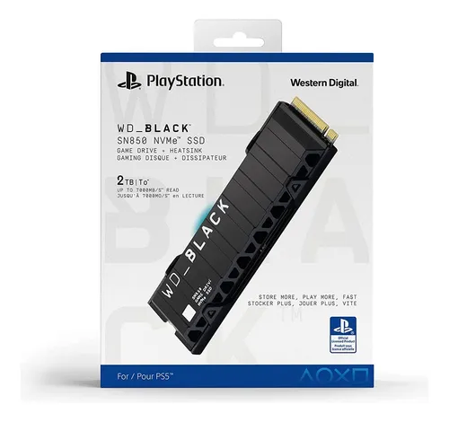 Esta unidad SSD de 1TB M.2 NVMe de Western Digital está diseñada para cumplir con los rigurosos requisitos de rendimiento de la PlayStation 5. Ofrece velocidades de lectura extremas (generalmente superiores a 5,500 MB/s), garantizando que los juegos instalados carguen con la misma rapidez que si estuvieran en el disco interno de la consola.