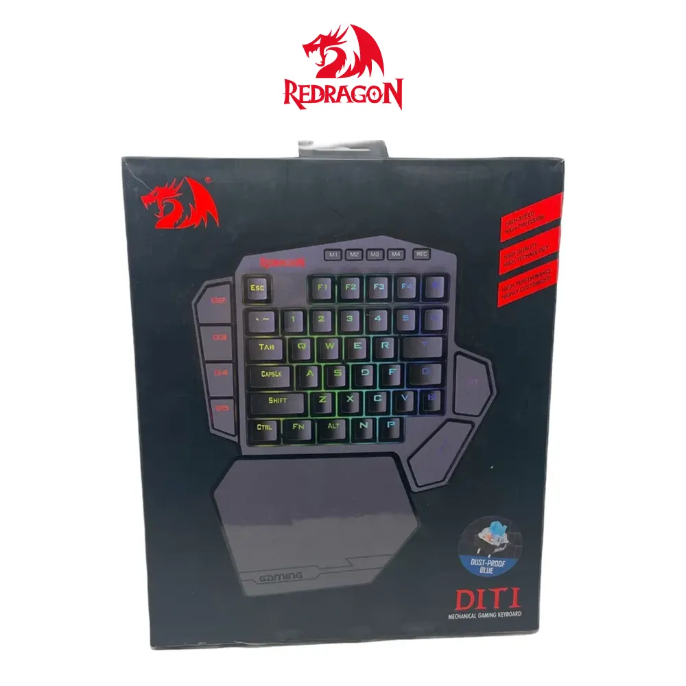 El teclado mecánico Redragon Diti Switch Brown K585RGB para una mano es perfecto para jugadores profesionales. Todas las teclas de acción están reunidas en un solo lugar. Este increíble teclado incluye un reposamuñecas desmontable y tiene 5 teclas macro programables que te permiten crear tus propias configuraciones. En total, puedes tener hasta 28 macros diferentes.