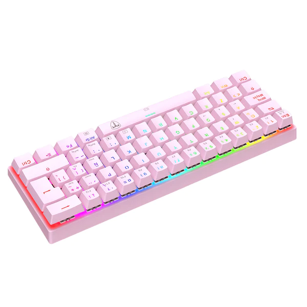 Es un teclado mecánico compacto del tipo 60%, con solo 61 teclas, diseñado para brindar la máxima libertad al ratón sin sacrificar funcionalidad. Destaca como un competidor formidable, equipado con interruptores mecánicos de alta calidad y todas las características esenciales para el juego. Fabricado con ABS reforzado de primera calidad, está construido para resistir largas sesiones de juego. Además, es resistente al polvo y a las salpicaduras, lo que lo hace ideal para ser transportado con facilidad gracias a su cable USB desmontable y su tamaño mini.