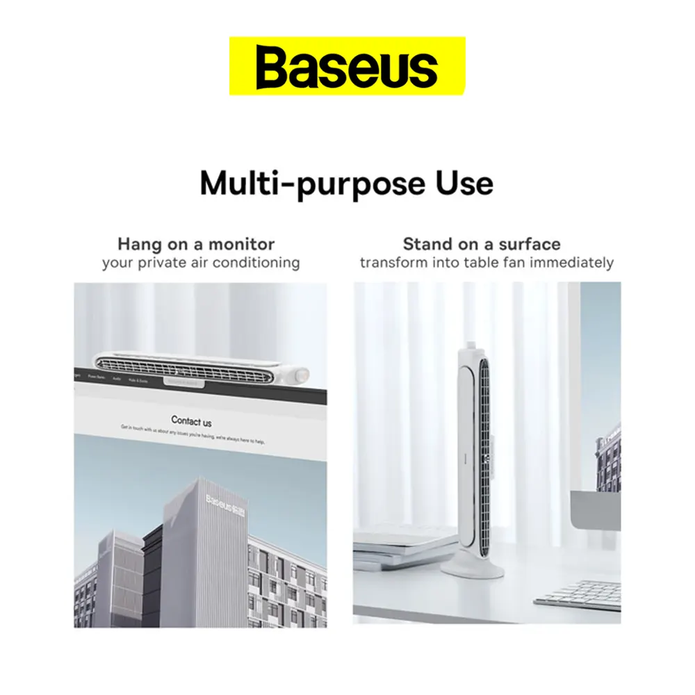 DESCRIPCIÓN 【Flujo de aire más amplio, brisa más refrescante】Este ventilador de escritorio sin aspas tiene un conducto de aire más ancho ajustable manualmente de 30 cm y 60°, lo que brinda más frescura en los calurosos días de verano en el estudio o la oficina. Utiliza la aerodinámica para mantener el viento en movimiento circular, ofrece una brisa continua y refrescante. 【Diseño de ahorro de espacio 2 en 1】 El diseño innovador se monta en la parte superior del monitor, ahorrando un valioso espacio en su escritorio. Además, este ventilador de escritorio personal puede colocarse sobre la mesa usando la base. * Funciona en monitores planos, monitores curvos, portátiles con un grosor inferior a 1,18 pulgadas/ 3 cm. 【Velocidad continua y menor ruido】Personalice su brisa con la perilla giratoria. Perfectamente personalizado para satisfacer sus necesidades de velocidad deseadas en los días sofocantes. Mantente fresco en los calurosos días de verano, permitiéndote estar siempre agradable y saludable. Este ventilador de mesa adopta un diseño único de conducto de aire con mecánica fluida y minimiza el ruido (35~42dB). Trae una brisa reconfortante, fresca y tranquila, ayudándote a concentrarte en tus estudios y trabajo. 【Alimentado por USB】 No incluye batería, compatible con computadoras, portátiles, bancos de energía y cargadores USB. * Se recomienda conectar a un puerto de 5V=1A para usar el ventilador de escritorio USB. 【Lo que obtienes】 Ventilador de escritorio personal sin aspas Baseus x 1, base para estar de pie x 1, cable USB-A a USB-C (4,92 pies/1,5 m) x 1, servicio al cliente amigable. Dimensiones del ventilador de escritorio: 14,17*4,72*2,99 pulgadas/36*12*7,6 cm. Marca: BASEUS Potencia (W): 5w Voltaje (V): 5V Certificación: CE Certificación: RoHS Función de sincronización: Sin sincronización Origen: CN (Origen) Función de control remoto: No Fuente de alimentación: USB Protección de corte de energía por escasez de agua: No Tipo: Solo refrigeración máx. Límite de tiempo: sin tiempo Función de rotación inversa: No Aplicación: <10㎡ Tecnología: Otro Cantidad de paletas rotativas: sin paletas Tipo de viento: Viento predominante Uso: Hogar, Oficina máx. Potencia: <20W Instalación: ventilador sin aspas Velocidad del ventilador: Tercera marcha Material: ABS + policarbonato. Ajustable: continuo Peso: 550g