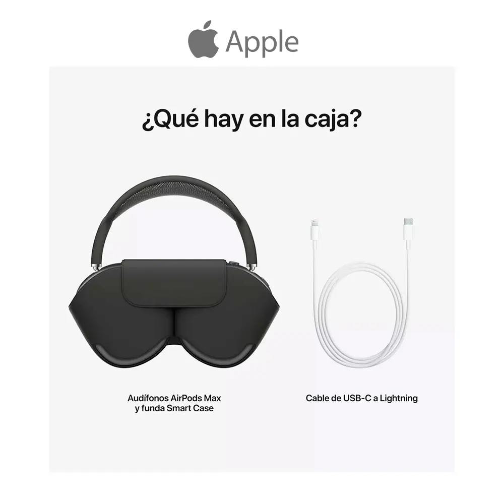 Los AirPods Max reinventan los audífonos de diadema. El controlador dinámico diseñado por Apple te ofrece un sonido inmersivo de alta fidelidad. Cada elemento, desde la diadema hasta las almohadillas, está pensado para brindarte un ajuste excepcional. La Cancelación Activa de Ruido líder en la industria bloquea el ruido exterior, y el modo Ambiente te permite escuchar todo lo que ocurre a tu alrededor. Además, el audio espacial con seguimiento dinámico del movimiento de la cabeza crea un sonido envolvente como si estuvieras en el cine(1). Avisos Legales (1) El audio espacial funciona con películas, programas de TV y videos en apps compatibles. Requiere un iPhone o iPad. (2) Requiere una cuenta de iCloud y macOS 11.1, iOS 14.3, iPadOS 14.3, watchOS 7.2 o tvOS 14.3 o posterior. (3) La duración de la batería varía según el uso y la configuración.