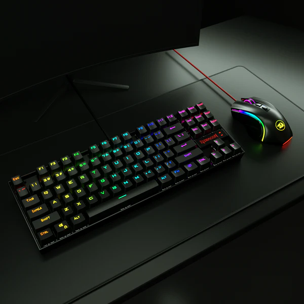 Este es un teclado mecánico compacto de 87 teclas con interruptores mecánicos personalizados que son similares a los interruptores Cherry Blue, brindando una sensación táctil con resistencia media, clic audible y retroalimentación táctil. Cuenta con 12 teclas multimedia, es resistente a salpicaduras, y permite desactivar la tecla de Windows. Las teclas están fabricadas mediante moldeo por inyección para proporcionar una retroiluminación clara y nítida. El teclado está hecho de metal y ABS, y tiene un cable USB de alta velocidad con un conector USB chapado en oro. El mouse Redragon M602A-RGB "Griffin" es ergonómico y retroiluminado RGB, con una sensibilidad ajustable hasta 7200 DPI (con opciones de 800/1200/1600/2400/7200 DPI) y una aceleración de 10 G. Su sensor de alta precisión garantiza un seguimiento exacto, mientras que los microinterruptores de grado de juego aseguran durabilidad y una respuesta rápida. El diseño ergonómico del mouse se ajusta cómodamente a la mano y sus botones están afinados para reducir la fatiga del clic, ideal para sesiones prolongadas de juegos. Es compatible con sistemas Windows 10, 8, 7, Vista y XP, y tiene compatibilidad limitada con Mac OS. Funciona con las principales marcas de computadoras y PC para juegos.