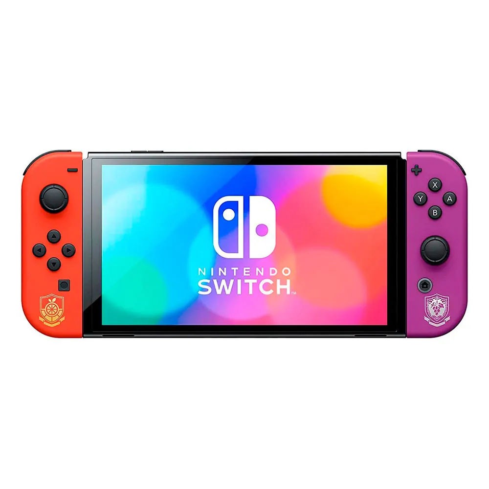 Equipado con una brillante pantalla OLED de 7 pulgadas que resalta los colores vibrantes del mundo abierto de Pokémon. Incluye 64 GB de almacenamiento interno, un soporte ancho ajustable y puerto LAN integrado en la base. Controles Joy-Con™ con vibración HD, sensores de movimiento y un diseño artístico único en colores Escarlata y Púrpura.