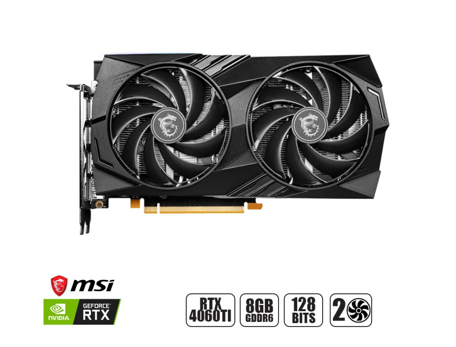 TARJETA DE VIDEO MSI RTX 4060 8GB GAMING GDDR6 GEFORCE NVIDIA 128 BITS, GRAFICO PARA VIDEOJUEGOS, 2 VENTILADORES, LED